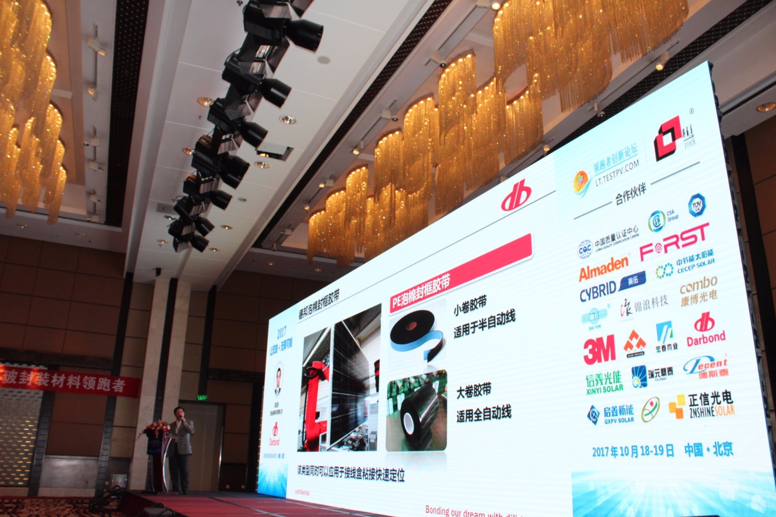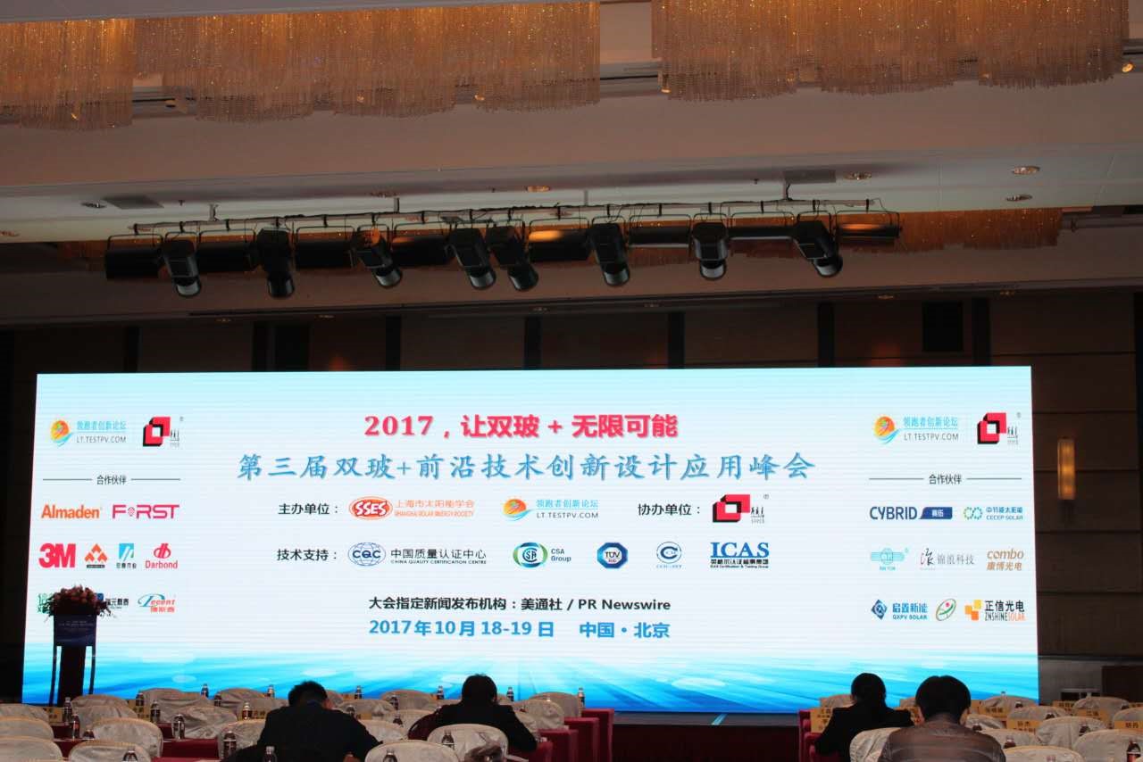 鑒于此,由上海市太陽能學會、中國光伏領(lǐng)跑者創(chuàng)新論壇聯(lián)合主辦的“第三屆‘雙玻+前沿技術(shù)’創(chuàng)新設(shè)計應用峰會”于2017年10月18-19日在北京臨空皇冠假日酒店隆重召開。德邦科技致力于光伏行業(yè)發(fā)展,CEO陳田安博士此次作為受邀嘉賓,攜光伏事業(yè)部和市場部專業(yè)人員參加了會議,同時發(fā)表了專題演講。
